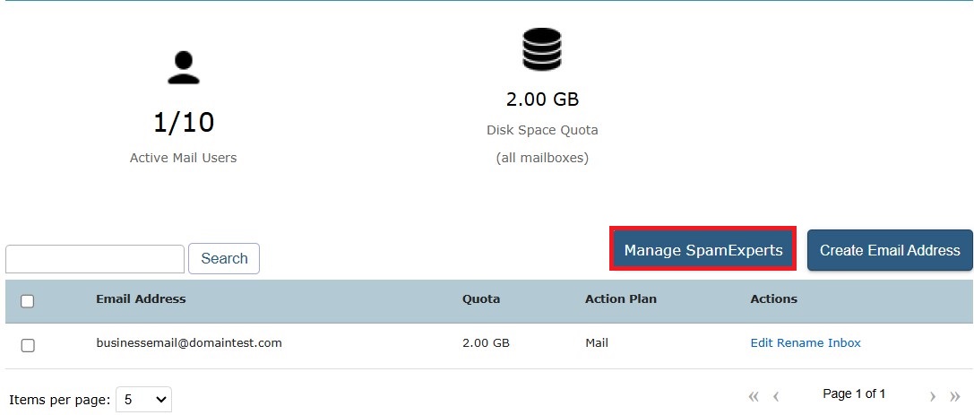 4. Click on the Manage SpamExperts button, which will redirect you to your SpamExperts Portal.